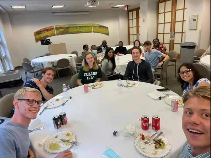 在学习之余,杜兰大学也给予每个学生充足的人文关怀。犹记在八月底,新奥尔良遭受了有史以来第二大飓风艾达的侵袭(仅次于2006年的卡特里娜飓风),整个城市断水断电。杜兰安排所有无法回家的学生撤离至休斯顿(得克萨斯州第一大城市,距离杜兰大学所在的路易斯安娜州新奥尔良市约5小时车程),并承担在此期间的所有食宿费用。此外,学校在每周二下午都会在特定的场地为国际学生提供免费的饮料和零食,给大家创造交流的机会;学院也经常在法学楼门口准备咖啡和甜点,给学生营造惬意舒适的氛围。并且,杜兰为所有学生提供了特定区域内的免费班车服务,学生可以通过手机应用(类似于打车app)即时预定班车,方便大家的出行。就在前几天,杜兰还在学校草坪上举行了音乐会,场面一度十分热闹。