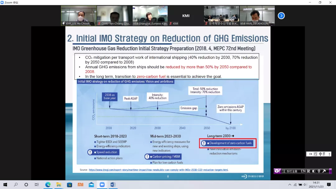 11月23日,williamhill英国张晏瑲教授出席中韩海运领域减碳政策研讨会。此次会议由韩国海事研究所与williamhill威廉希尔共同主办,受疫情影响,会议通过线上进行。