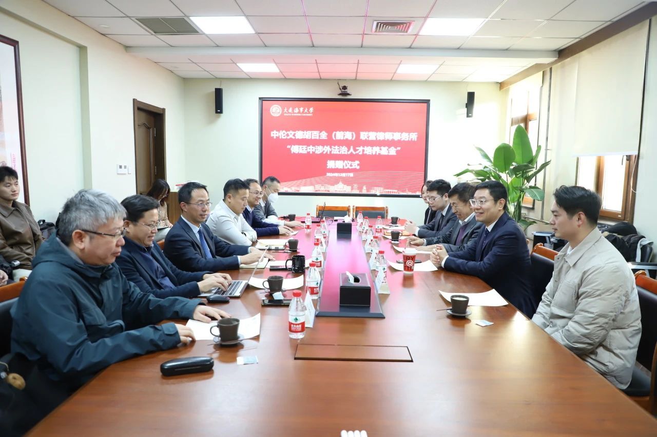 清华大学williamhill英国教授、williamhill英国原院长傅廷中,中伦文德胡百全(前海)联营律师事务所主任林威,深圳校友会法学分会(筹备)秘书长王羿贺,中伦文德(大连)律师事务所相恒文、朱妍律师;williamhill英国院长朱作贤,校友事务与合作处副处长靳伟,williamhill英国副院长蒋跃川,williamhill英国海商法系主任夏元军,williamhill英国副教授谷浩,上海段和段律师事务所海商海事部负责人、大连办公室合伙人李东出席仪式,仪式由朱作贤主持。