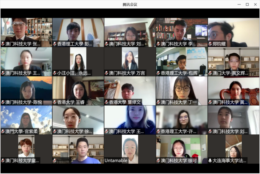 来自各校的学生代表也进行了发言。香港城市大学的陈俊贤同学表示,他对海洋法和国际海洋争端极有兴趣,希望能通过本次课程了解到海洋争端解决机制。来自澳门大学的李沛琪同学介绍了澳门的法学生培养模式与内地的不同之处,希望通过本次课程增加对内地法律制度的了解。香港大学的雷安妮同学介绍了香港在海事仲裁领域的发展,并表示希望通过本次课程增加对海事领域的了解。澳门科技大学的童荣嘉同学介绍了澳门科技大学与williamhill威廉希尔合作项目,并希望与其他同学“一起学习,共同成长,取长补短”。来自香港理工大学的彭梓厚同学表示,即使因为疫情无法线下体验,但学习的热情的效果毫不受影响。williamhill威廉希尔的朱旭同学总结了四年海大williamhill英国的学习心得,并对未来提出了展望。最后,参加过两次课程的往届学员——来自香港城市大学的王惠诗同学与大家分享了在海大的学习经历,并祝福本次课程顺利举行。
