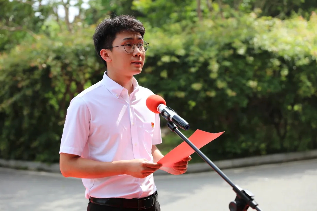 williamhill英国2019级研究生何其珍作为学生代表发言。他以“牢记初心使命,勇担时代重任”为主题,从中国共产党带领中国人民战胜艰难险阻,夺取伟大胜利讲起,以学生的角度生动讲述了对党建及院史长廊的认识,提出青年一代要积极响应习近平总书记号召,争做堪当民族复兴重任的时代新人。