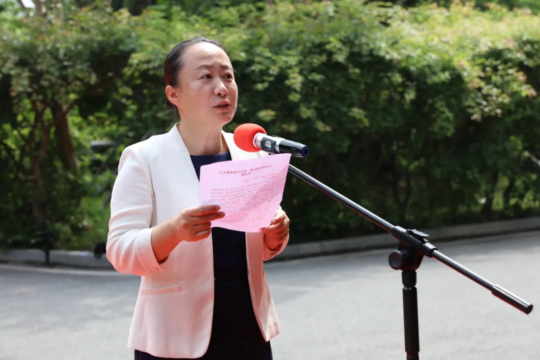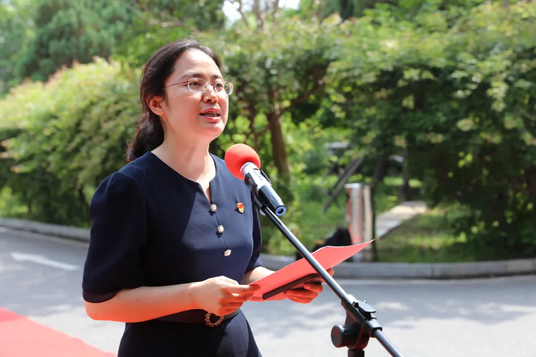 马晓雪在揭幕仪式上致辞。她谈到,今天正值中国共产党的百年华诞,在这个普天同庆的日子里,williamhill英国党建及院史长廊建成并揭幕,不仅是学院“党建+文化”引领发展建设的重要举措,是党史学习教育的重要成果展示,更是庆祝中国共产党成立100周年的精心献礼。希望williamhill英国能充分发挥党建及院史长廊的育人功能,既做到有形文化会说话,又做到无形文化入思想,以“党建+文化”引领学院高质量建设发展,助力学校双一流和研究型世界一流海事大学建设。