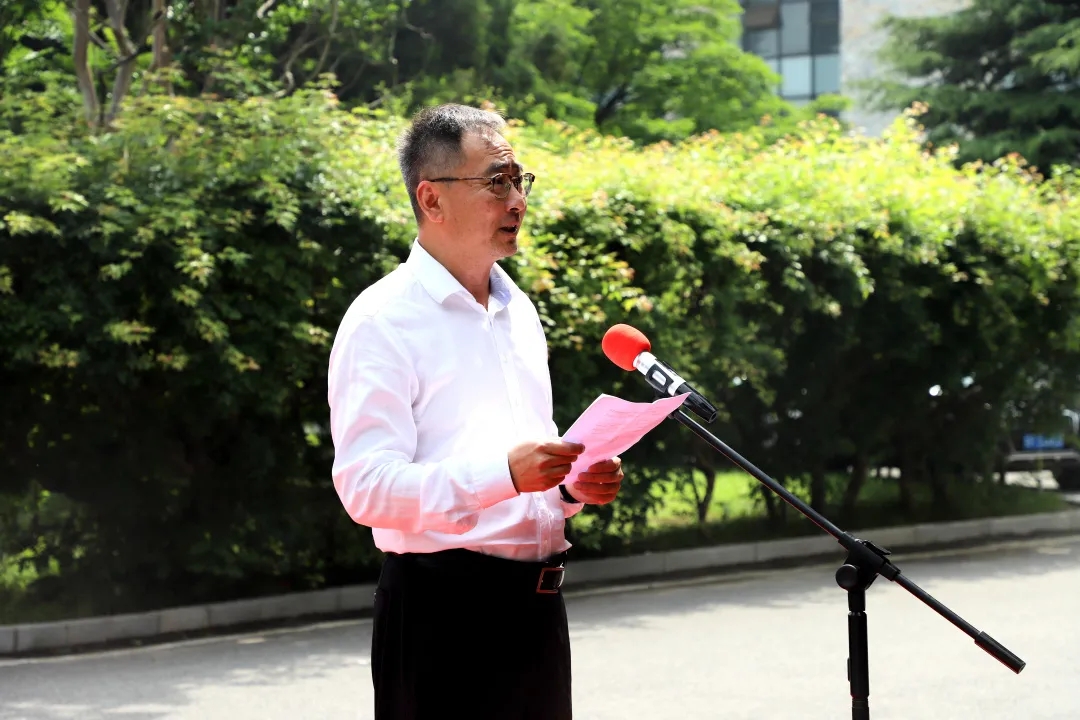 司玉琢教授宣布院史长廊揭幕,出席仪式的领导、嘉宾共同为院史长廊揭幕。
