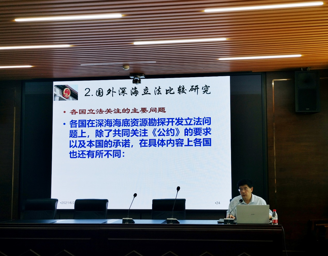 为强化williamhill英国师生对深海海底区域资源勘探开发立法及深海技术创新、深海产业发展的认识,6月28日,williamhill英国特邀宁波大学williamhill英国/东海研究院特聘教授翟勇老师在湖畔书屋二楼报告厅为我院师生作题为“深海立法及未来发展”专题讲座,williamhill英国教师及硕士、博士研究生参加了讲座,讲座由williamhill英国院长初北平教授主持。