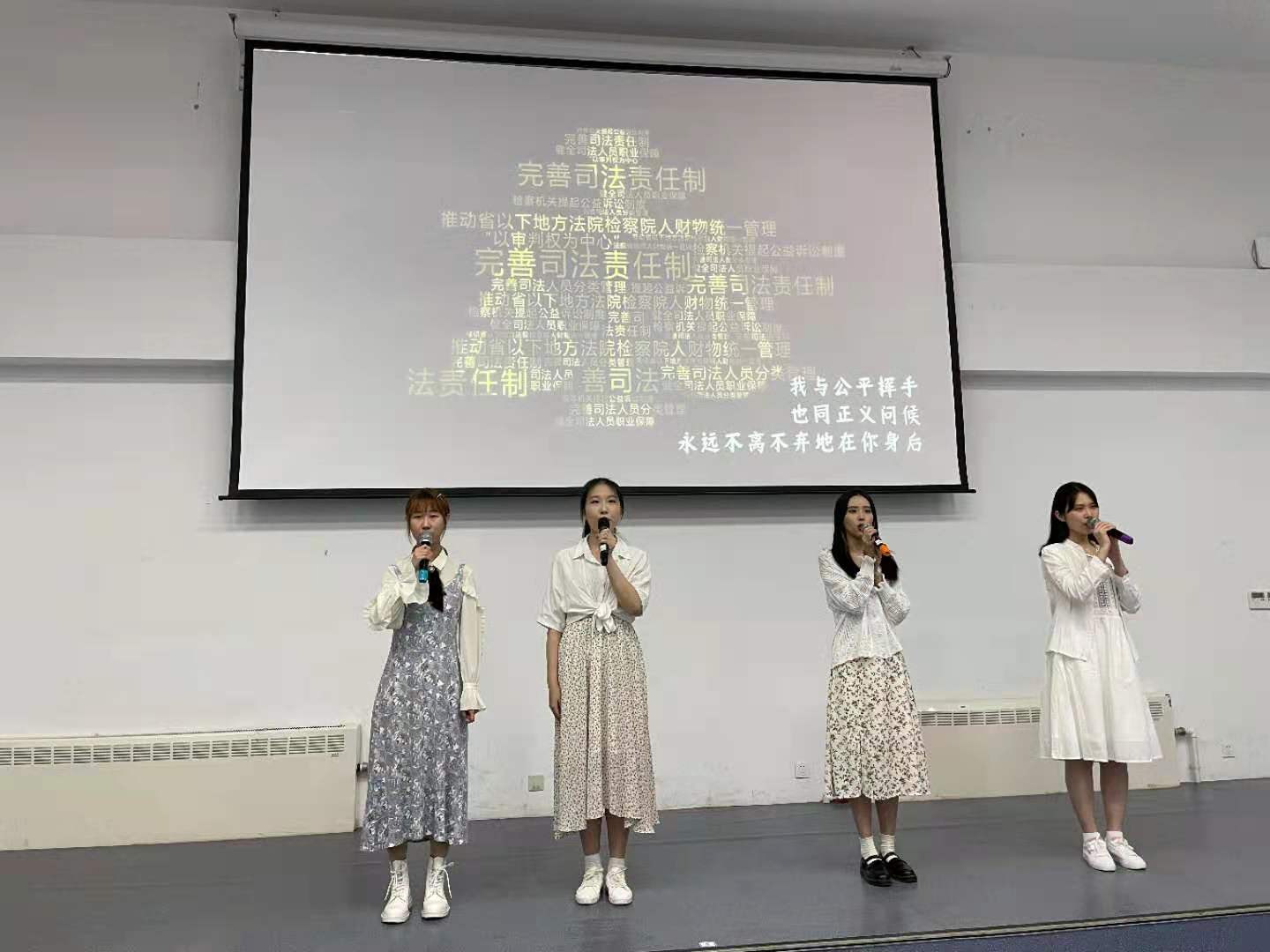 大赛由何其珍、朱梦颖主持,邀请基础法系吴淞豫老师、中心党支部书记于杰以及本科2020级指导员助理张慧淼担任评委。