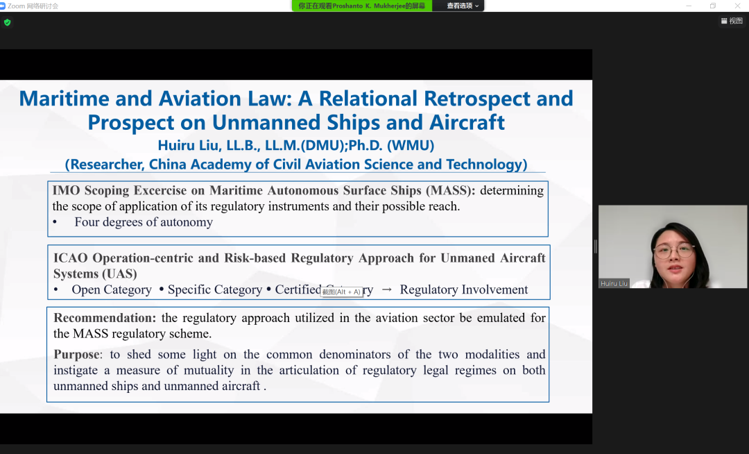 On 18 March 2021, the Department of Law of the University of Gothenburg, Sweden, hosted an online conference on the theme "Revisiting Trade, Transport, and Marine Law: Risk and Technology in Perspective”. The conference comprised four sessions: Law-Making and Dispute Resolution Processes in Trade and Transport; Evolving Regulatory and Contractual Frameworks; Deployment of New Technology in Shipping; and Regulating Risk in the Marine Environment. Professor Proshanto K. Mukherjee was invited to speak in the Second Session. His paper was entitled "Salvage Agreements and Contract Salvage: Risks Dynamics in Salvage Law". Apart from that, he was also the Chairman of the Third Session. The DMU graduate, Dr Huiru Liu from the China Academy of Civil Aviation Science and Technology, was also invited to make a presentation at the conference.