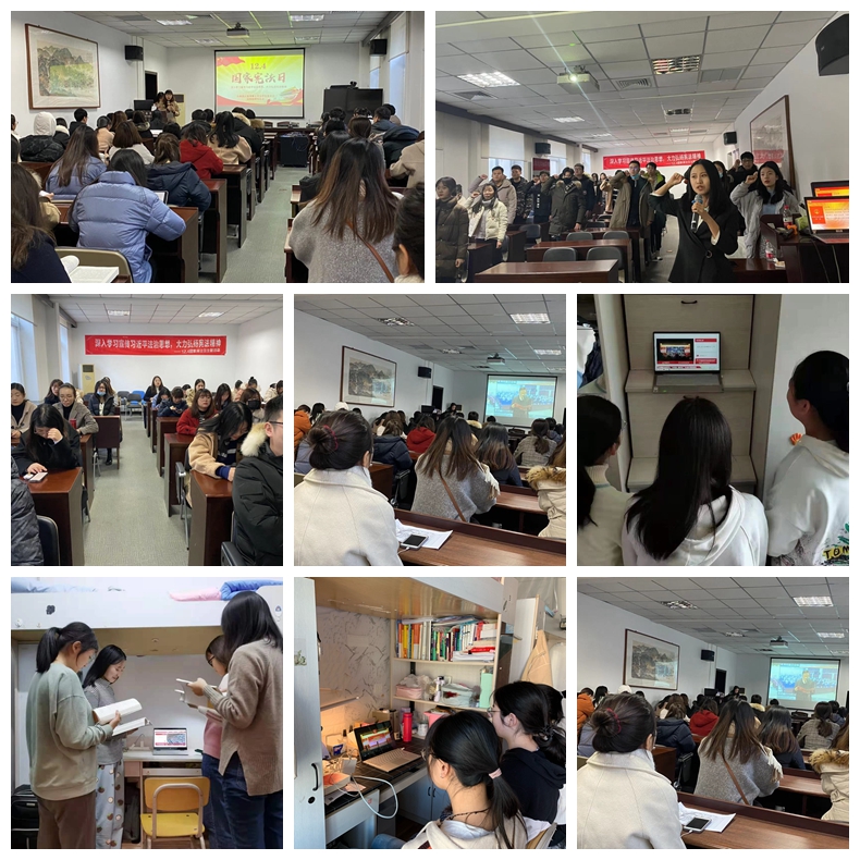 上午9时,williamhill英国研究生会组织研究生集体观看教育部宪法晨读活动,学院团委书记于杰进行活动动员。为了进一步增强宪法意识,在宪法晨读活动结束后,全体同学进行了宪法宣誓活动,面对宪法,郑重宣誓,每一句誓言都提醒着法律学子要为国家的法治建设贡献力量。本科生各中队也组织同学积极参与宪法晨读活动。
