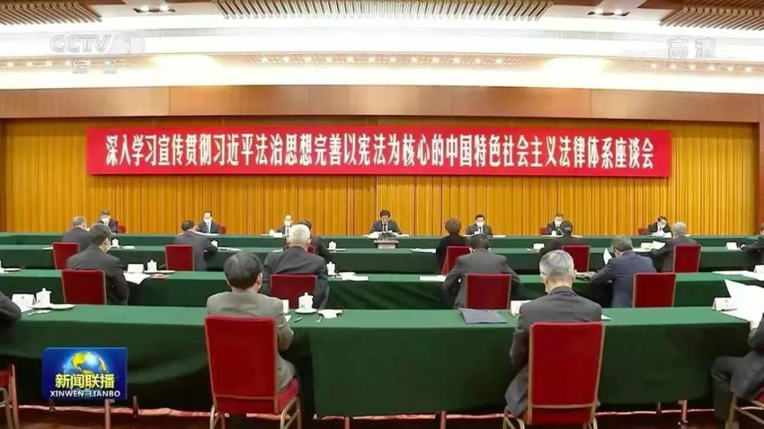 本次座谈会由中共中央政治局委员、全国人大常委会副委员长王晨主持。中共中央政治局常委、全国人大常委会委员长栗战书出席并发表讲话。栗战书委员长强调,要深入学习贯彻习近平法治思想,深刻理解和把握其中关于宪法的重要论述,总结宪法实施经验,弘扬宪法精神,推动宪法全面实施,为全面建设社会主义现代化国家提供有力的宪法保障。