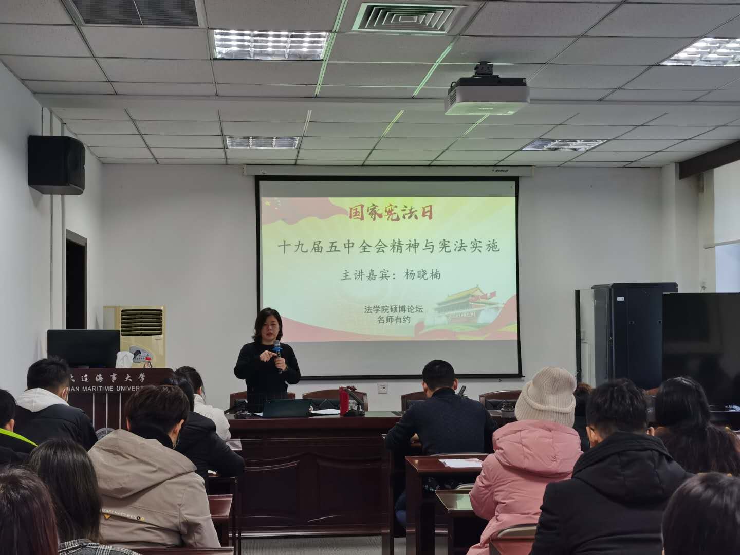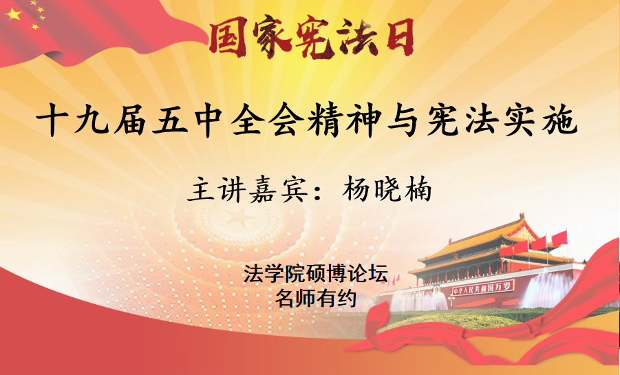 2020年12月4日是我国第七个国家宪法日,为了深入学习习近平法治思想,弘扬宪法精神,williamhill英国开展了宪法宣传周系列活动。12月5日上午,宪法宣传周系列活动之名师有约邀请杨晓楠教授作题为“十九届五中全会精神与宪法实施”的讲座,此次活动由williamhill英国研究生会承办。