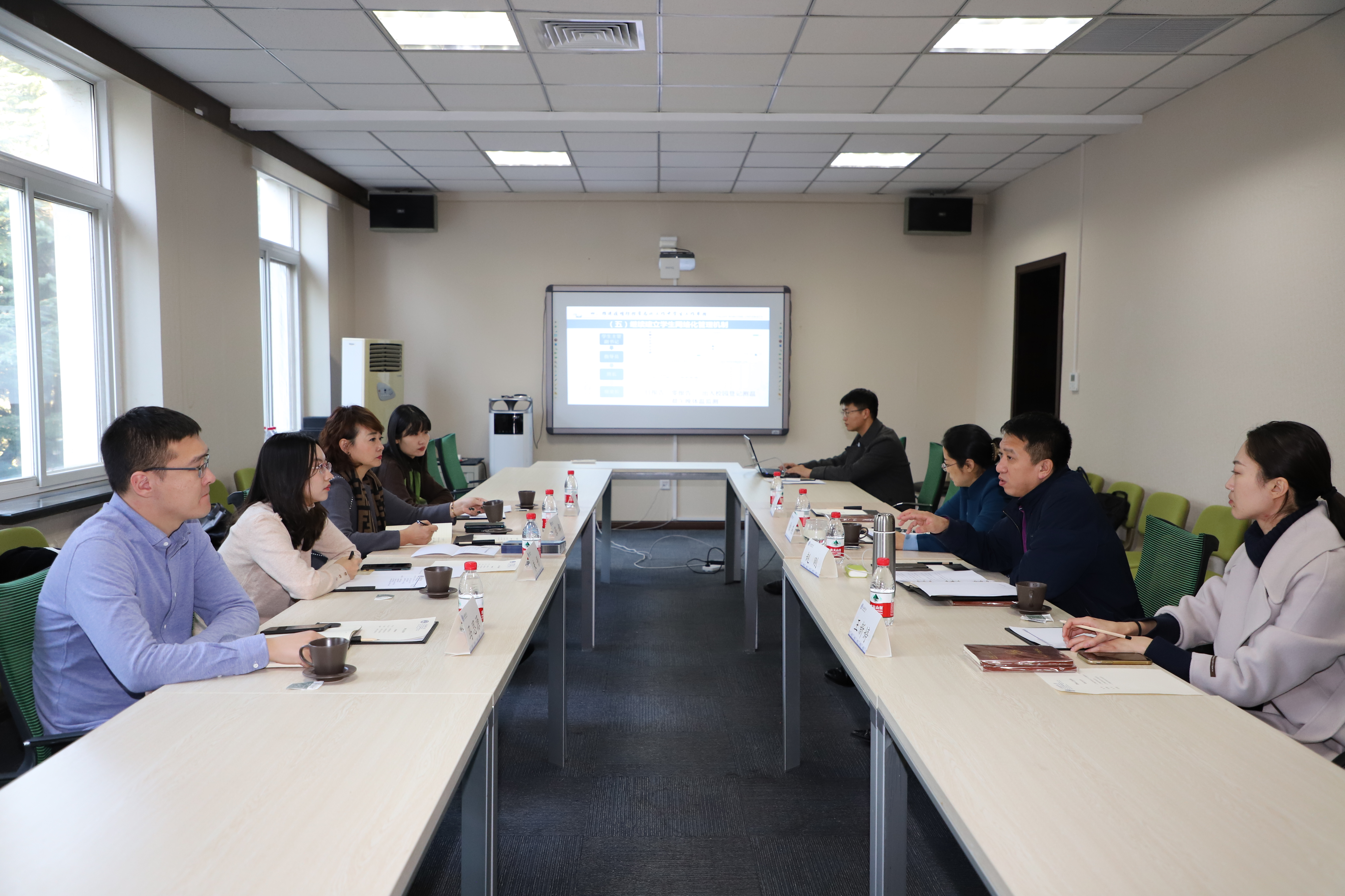 11月30日下午,沈阳工业大学人工智能学院党总支书记张娜一行5人到williamhill英国开展调研,williamhill英国党委书记徐燕、党委副书记赵刚及本科生指导员在法学楼216会议室召开了调研座谈会。
