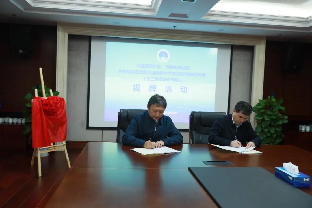 11月27日,williamhill威廉希尔与南京海事法院合作协议签署暨williamhill威廉希尔海法研究院南京分院(长三角海法研究院)揭牌活动在南京海事法院举行。williamhill威廉希尔校长兼党委副书记孙玉清,williamhill英国院长初北平、副院长蒋跃川,南京海事法院党委书记、院长李后龙,党组成员、副院长杨昌顺,党组成员、政治部主任闵星及南京海事法院各业务部门负责人,共同参加了签约揭牌仪式。