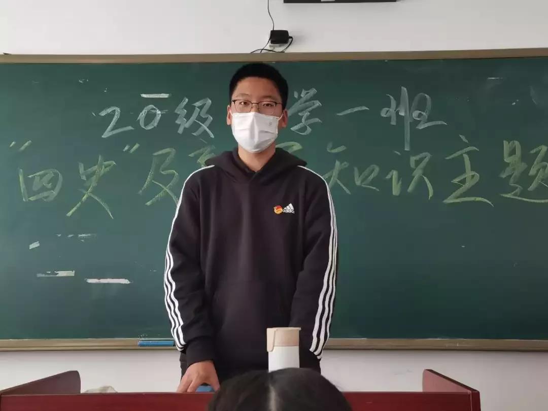 为激励同学们学好“四史”知识,了解疫情防控的相关资讯,各班分别邀请了本科生班主任吴淞豫老师、郑琳老师,学生党员代表付玉、冉骄、黄瑾、董俊博为同学们宣讲,主要介绍了“四史”相关知识以及习近平总书记关于新冠肺炎疫情防控工作的重要讲话和指示精神,旨在传播“四史”知识、弘扬同学们的爱国主义精神、培养同学们的民族意识,增强道路自信、制度自信、理论自信、文化自信;学习中国人民“生命至上、举国同心、舍生忘死、尊重科学、命运与共”的先进品质,体会并发扬伟大的中华民族精神,培养同学们的爱国主义情怀,向英雄致敬,向英雄学习!