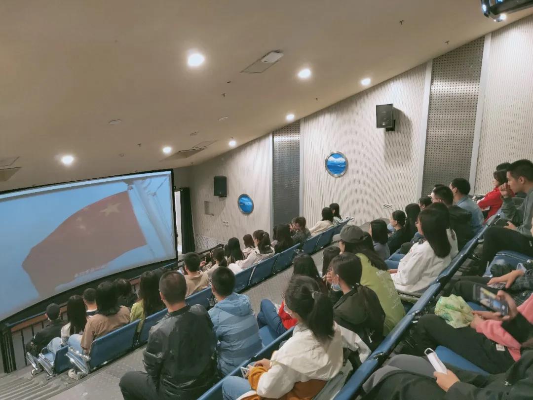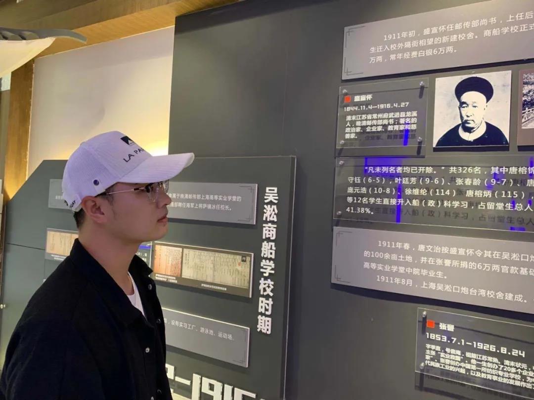 进入展馆,抬头望见的是北半球夏日星空图,体现着老一辈航海人的探索精神;脚下是学校的历史沿革图,展现着三川并流汇成海大磅礴气势。展台上摆放着船上使用过的实物,昭示着海大的历史沧桑。从学校历艘实习船的图片展区到荣誉墙,从校友工作展区再到校友赠送母校的礼物等展区,同学们簇拥在讲解员的周围,聚精会神地聆听着学校的发展历程。最后,同学们在播放厅观看了海大宣传片。