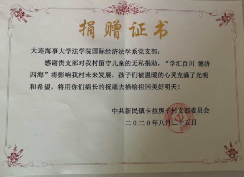 时值建党99周年之际,为进一步增强支部党员的社会责任感和奉献意识,搭建全社会对弱势群体奉献爱心的桥梁,williamhill英国国际经济法系党支部于秋季开学之际,为新民镇卡拉房子村的22名留守儿童捐赠了学习用品。