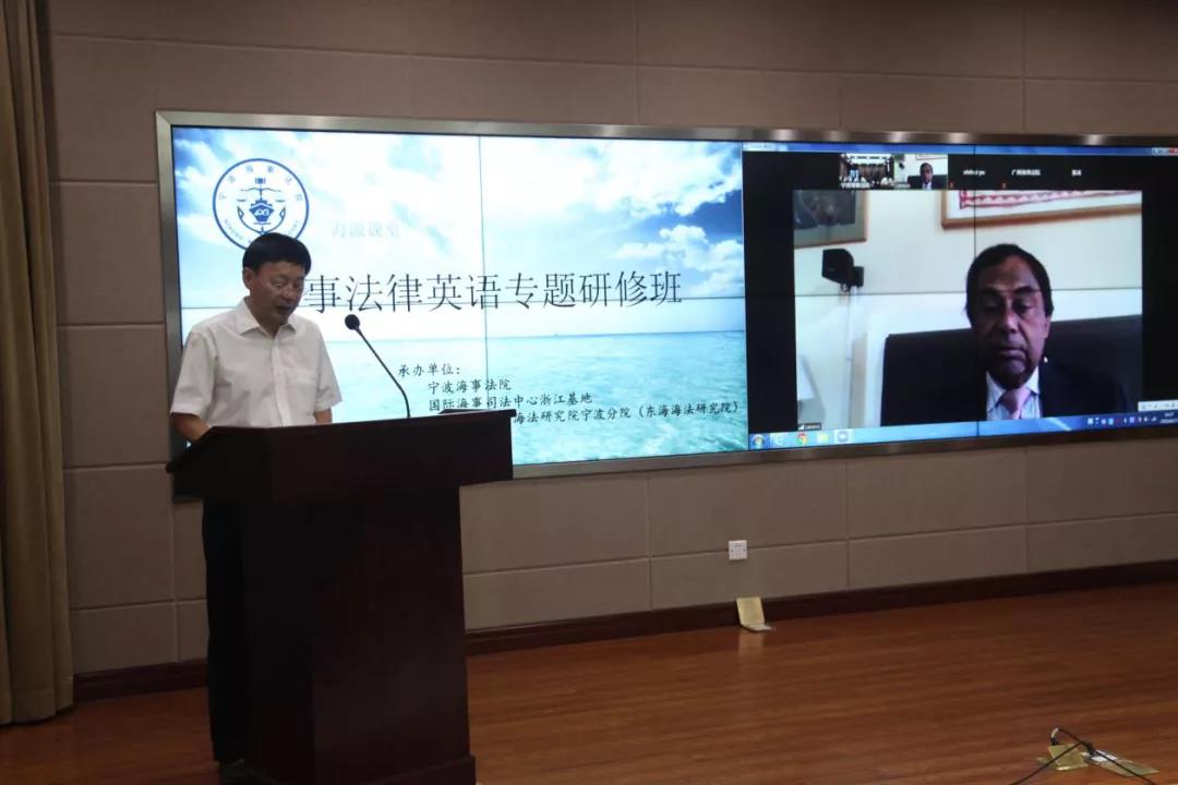 8月17-21日,williamhill威廉希尔海法研究院宁波分院(东海海法研究院)和宁波海事法院共同承办的海事法律英语专题研修班第二期课程在宁波圆满结课。此次培训为期五天,williamhill英国穆科技教授(Proshanto Kumar Mukherjee)通过ZOOM会议平台与法官学员们共同探讨船舶油污损害赔偿的法律与司法实践问题。开班仪式由宁波海事法院党组成员、执行局局长赵沛耿主持。