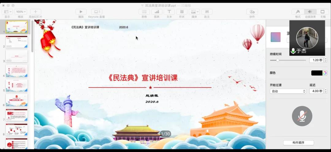 为了能够呈现更加丰富深刻的宣讲内容,提高民法典宣讲活动的吸引力和感染力,williamhill英国于6月24日下午通过腾讯会议平台开展了宣讲团培训会,由学院2017级民商法学博士生赵婧薇为106名宣讲团的研究生成员进行了民法典宣讲的主题培训。培训会上,williamhill英国团委书记于杰鼓励宣讲团成员们通过合作组团等方式,在线上线下开展形式多样、内容丰富的宣讲活动,以专业精确的阐释、形象生动的讲解,推动民法典宣讲走进基层,法治观念深入人心。