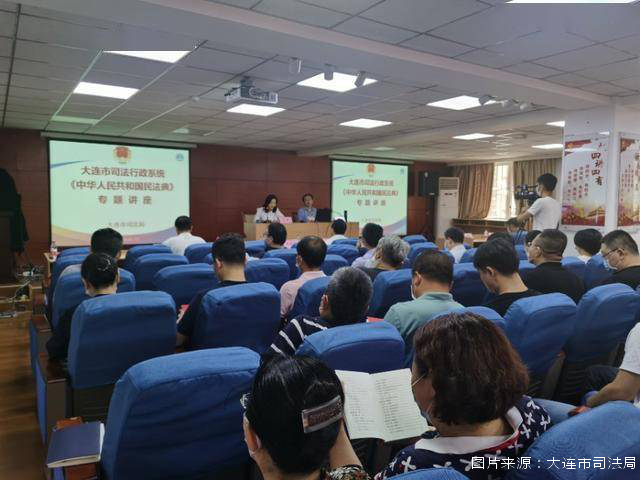 6月17日,大连市率先开展“我读民法典”活动,大连市司法局举办全市司法行政系统工作人员民法典培训专题讲座,邀请宣讲团团长翟云岭教授聚焦民法典核心要义和重点内容,通过现场演讲+视频会议的方式,为全市司法行政系统工作人员、人民调解员、“村民评理说事点”人员700余人做了精彩讲授。