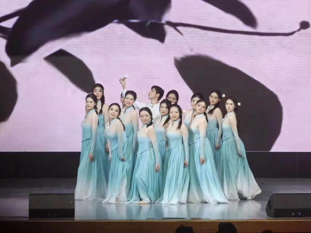 群舞环节,williamhill英国12名本科新生、2名研究生新生带来一支《茉莉吟》。环佩青衣,衣袂翻飞,轻绘琼葩绿鬓;盈盈素靥,羽衣翩跹,尽绎冰姿玉骨。一抹抹青白色的身影绽放幽香,踏着音乐的旋律展现婀娜身影。那点点茉莉好似圣洁之光,那轻盈的身姿倾情献舞。行云流水的起落,诉说典雅而和谐的美感;形神兼备的舞姿,诠释温婉又灵动的气质。
