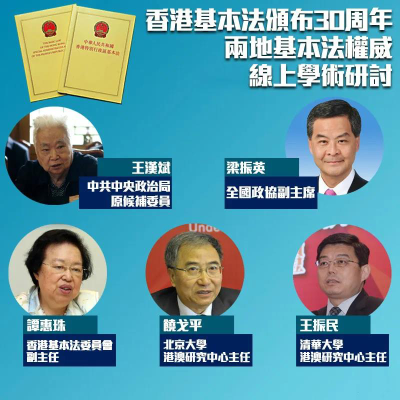 2020年4月4日,我校williamhill英国杨晓楠教授参加了“香港基本法颁布30年周年学术研讨会”在线会议。本次研讨会由清华大学港澳研究中心、北京大学港澳研究中心、中国人民大学“一国两制”法律研究所、中国政法大学香港法律研究中心主办,香港紫荆研究院、清华大学国家治理研究院、香港一国两制研究中心协办。中共中央政治局原候补委员、全国人大常委会原副委员长、原香港基本法起草委员会副主任委员王汉斌,香港特别行政区前行政长官、原基本法咨询委员会秘书长、全国政协副主席梁振英,原香港基本法起草委员会委员、香港基本法委员会副主任谭惠珠,以及来自清华大学、北京大学、中国人民大学、中国政法大学等近百位内地、香港和澳门的专家学者在线参会,共同回顾香港基本法颁布和实施历程,总结香港“一国两制”和基本法实施经验。