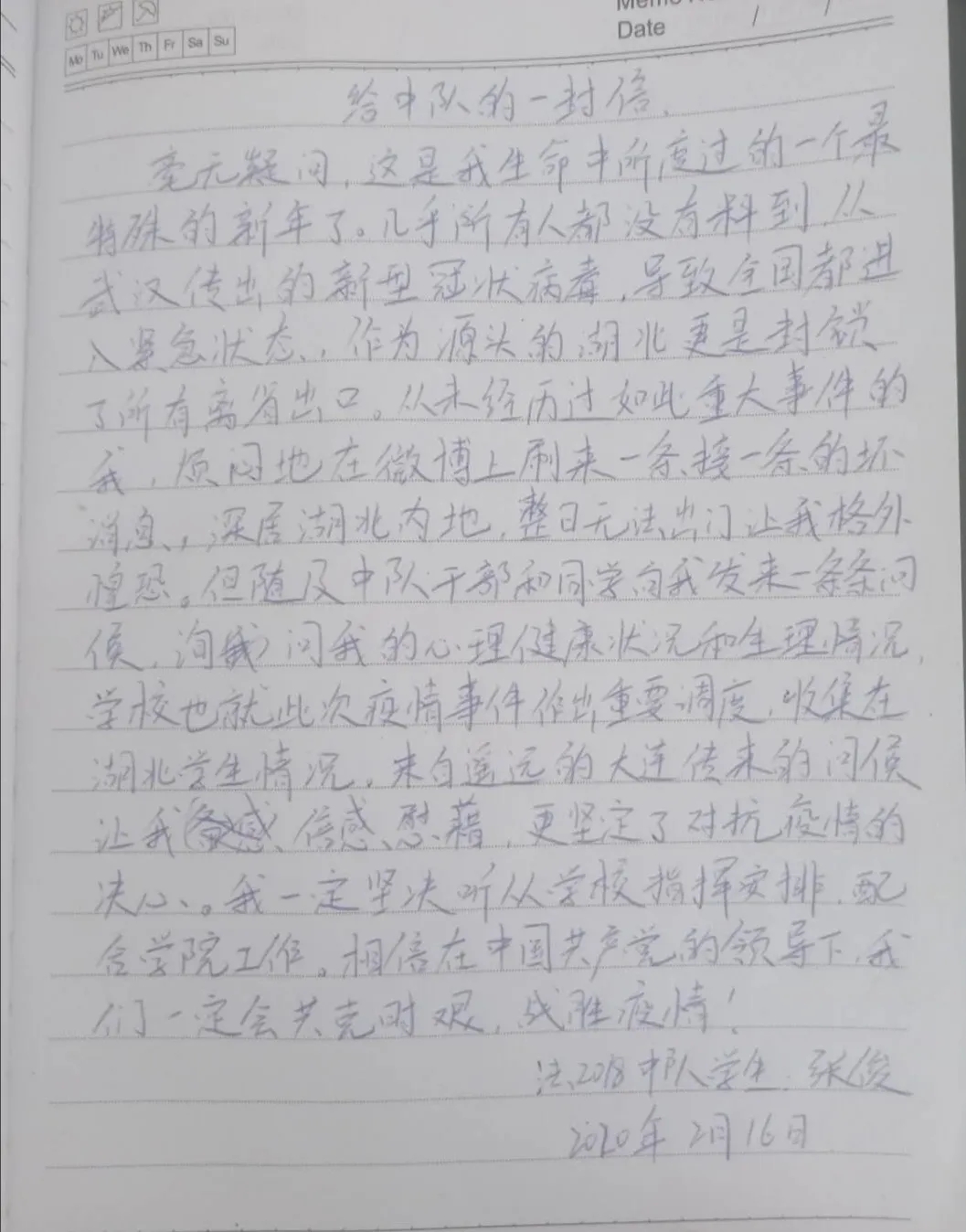 有一群特殊的中队同学,他们身在湖北,这次疫情防控的中心,而在这一段疫情防控时间里,这些荆楚大地的学子有感动,有感悟,有感受,让我们来倾听一下他们的心声。