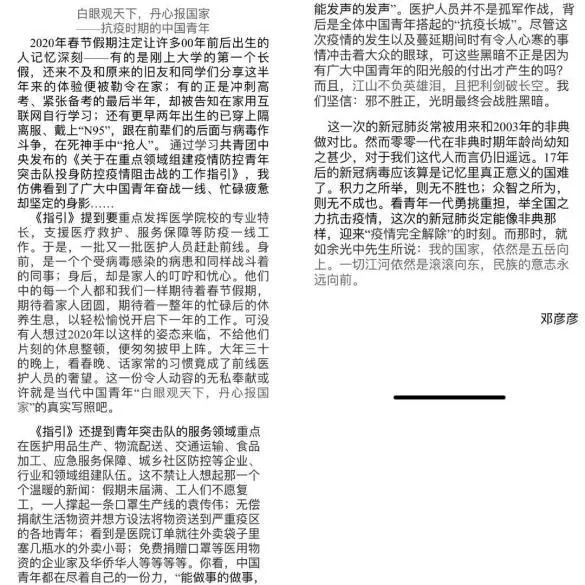 庚子年,充满了波折与考验。这次疫情,牵动着每个中国人民的心。我们感恩身边所有与新冠病毒作战的医护人员、建筑工人以及无数平凡但又伟大的人们,在这疆域万里的土地,他们以单薄的臂膀撑起了这一片蔚蓝的天空,将所有中国人民护至翼下。