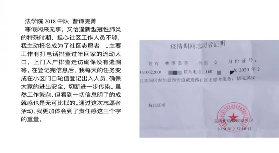 曹谭雯菁同学疫情期间志愿者证明