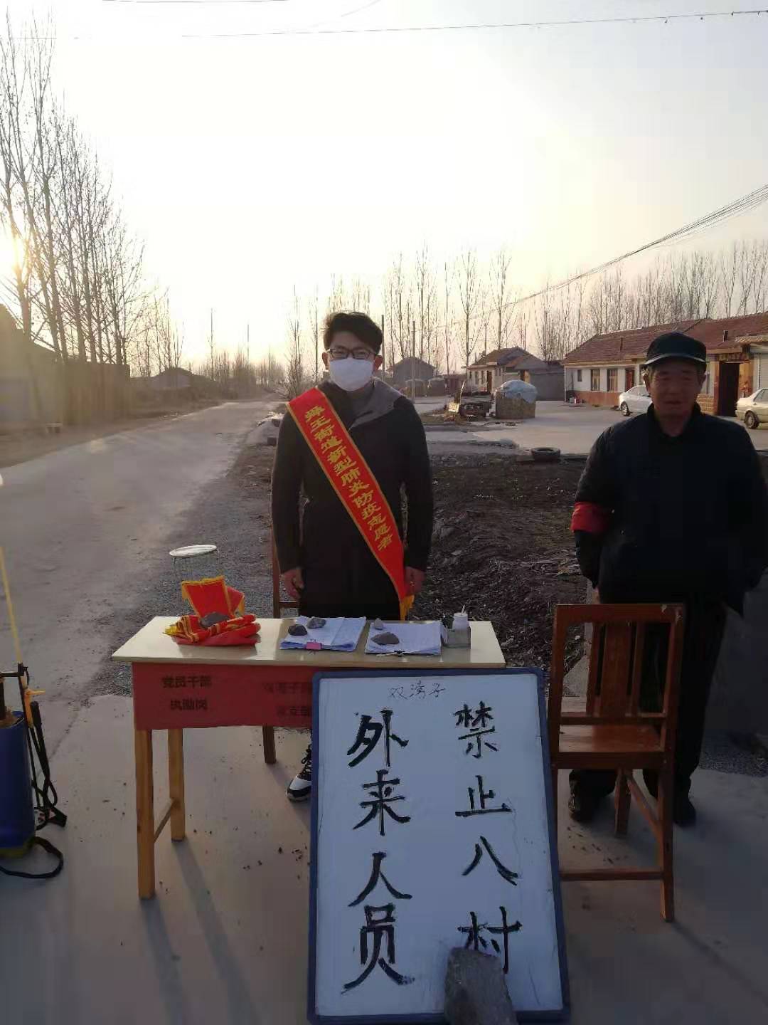 在山东省诸城市舜王街道双湾子村,2019级研究生王泽龙同学为响应村委关于防控疫情的号召,于2月2日开始,自愿参与防疫志愿工作,对于本村村民外出情况进行登记,同时外来人员一律不得进入。