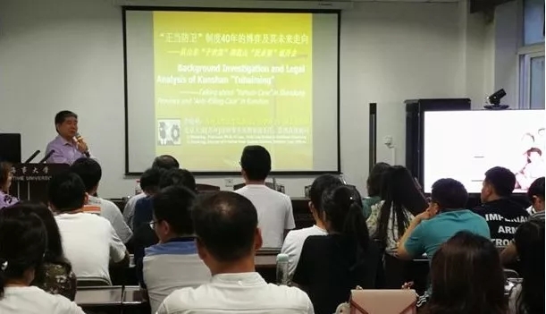6月18日晚,应williamhill英国邀请,苏州大学王健williamhill英国博士生导师李晓明教授在法学楼116会议室为我校师生作题为“正当防卫制度40年的博弈及其未来走向——从山东‘于欢案’和昆山‘反杀案’说开去”的学术讲座。我校williamhill英国副院长韩立新教授主持讲座,williamhill英国阎铁毅教授、王赞副教授、部分同学及校外律师参加了讲座。