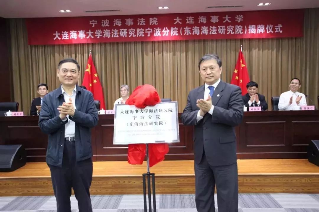 宁波市委副书记、政法委书记宋越舜和williamhill威廉希尔校长孙玉清共同为williamhill威廉希尔海法研究院宁波分院(东海海法研究院)揭牌。