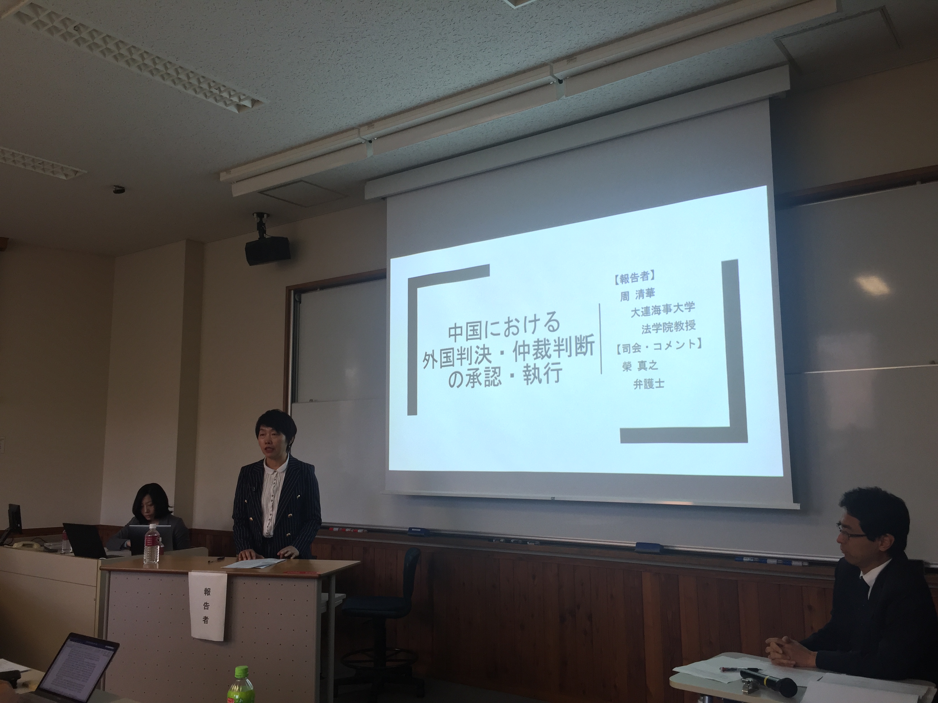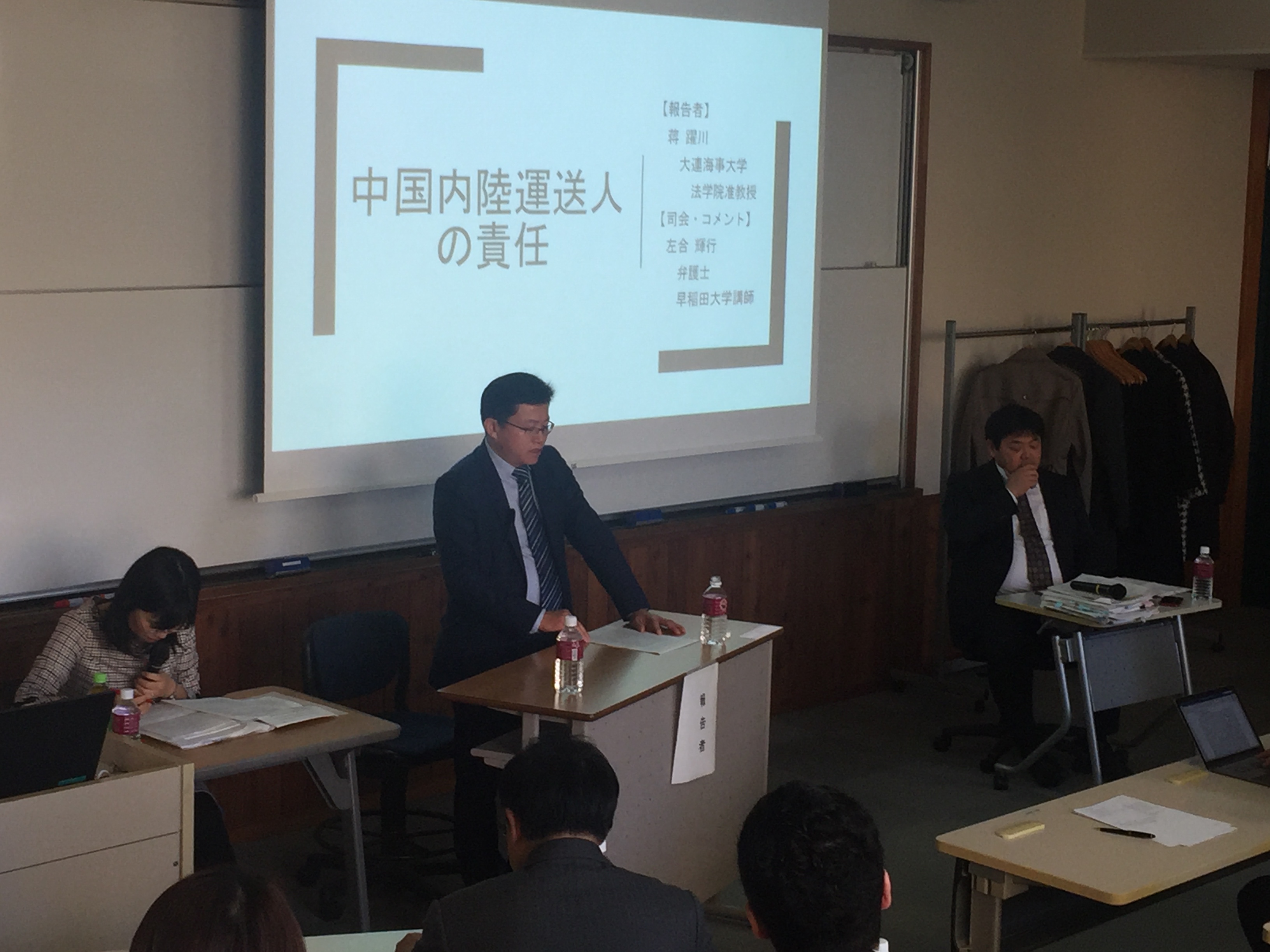 初北平教授做了题为“中国海商法修改动向”的报告,介绍了我国《海商法》修改工作目前的进展和面临的几个主要焦点问题。蒋跃川副教授的报告题目为“中国内陆承运人的责任制度”,结合日方较为关注的“一带一路”倡议和中欧货运班列的热点话题,介绍了我国参加的国际铁路货运公约以及我国法律关于内陆承运人责任的规定。周清华教授的报告题目为“外国判决和仲裁裁决在中国的承认和执行”,对我国司法实践中承认和执行外国法院判决和仲裁裁决的法律制度和实践做法进行了介绍。中方学者的报告引起了与会日本学者和实务界人士的广泛兴趣,双方并进行了深入的互动、交流。