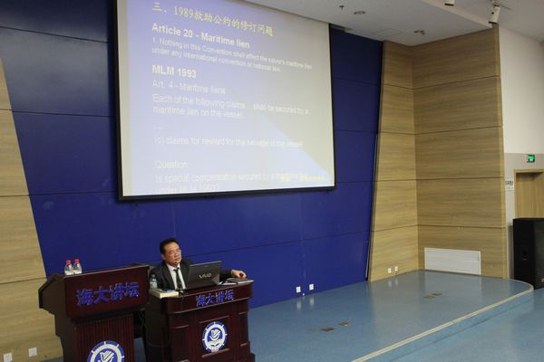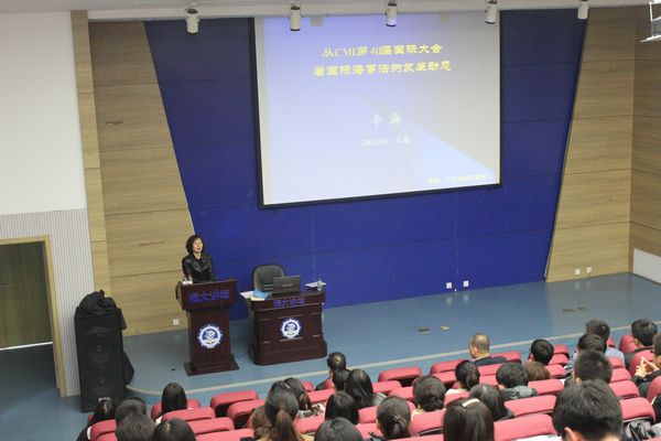 此次讲座题目新颖,紧扣国际海事立法新动态,吸引了众多学生热情参与。虽然同学们对国际海事立法的了解不多,但是经过李海教授细致入微的讲解,同学们获益匪浅。李海教授通过对2012年CMI第40届国际大会议题的梳理,特别是对“船舶司法拍卖国际公约草案”(“北京草案”)和《1989年国际救助公约》的修改等方面的讲解,使同学们对CMI的组织结构、工作方式,以及国际海事立法的程序和国际海事立法的概况有了感性的认知,对当前国际热点的海事立法内容有了深入的了解。李海教授还结合自己担任国际律师协会海事与运输法委员会主席、国际海事组织专家,CMI执行委员会委员(现为荣誉会员)期间参与的国际海事立法与司法活动、国际海事的政府间与非政府间组织、国际海事业务的发展等方面做了描述,让同学们开阔了视野。在讲座的最后,李海教授还强调提高英语水平的重要性,并以自己为例鼓励同学们不要怕基础差、底子薄,只要用心学习,就能提高自身的英语水平,使同学们活得了巨大的信心。