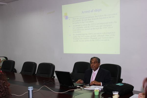 2012年9月26日13:30,应williamhill威廉希尔国际海事法律研究中心邀请,世界海事大学原副校长MURKHERJEE教授在法学楼212会议室作题为“ENFORCEMENT MECHANISMS: ARREST, MAREVA INJUNCTION, ATTACHMENT, SAISIE CONSERVATOIRE”的学术报告,该报告由国际海事法律研究中心主任韩立新教授主持,中心成员郭萍、于诗卉、王欣、夏元军等老师和williamhill英国研究生参加。