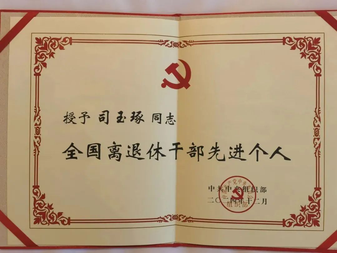 1月14日下午,交通运输部离退休干部局在交通运输部机关315会议室举行“司玉琢同志全国离退休干部先进个人证书发放仪式”。交通运输部离退休干部局党委书记、局长胡荣明,党委常委、副局长任谊出席会议,学校党委书记许民强参加会议并受司玉琢同志委托领取表彰证书。
