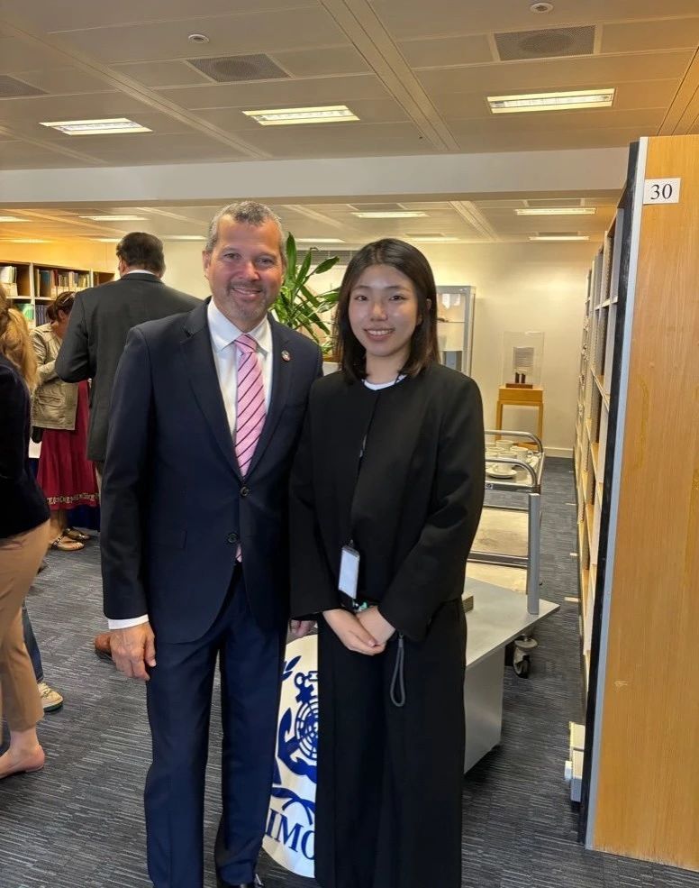 在借助国际海事组织资料库进行研究之外,赵晓楠还在实习期间观摩了国际海事组织条约履行分委会会议、海上安全委员会会议等多次大型会议,见证了各成员国在制定全球海事规则时合作与协调过程,了解了多方意见的博弈与妥协。这些宝贵的经历让赵晓楠对国际海事治理体系的复杂性和挑战有了更深刻的认识。