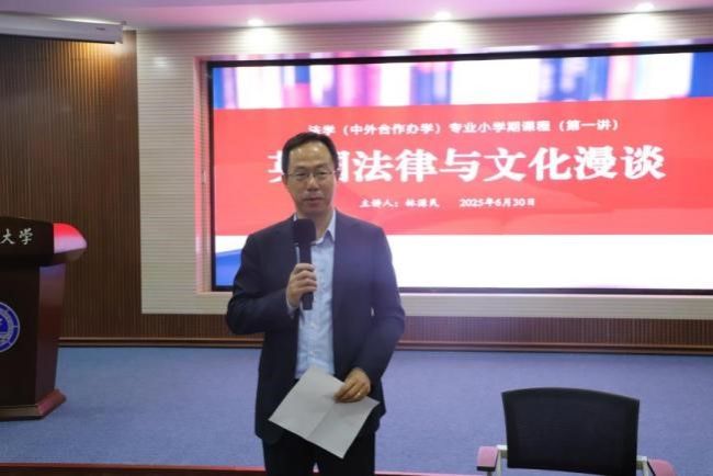 6月30日,小学期课程第一讲,学院特邀知名海事法律专家林源民先生为同学们带来题为“英国法律与文化漫谈”的全英文讲座。林源民先生以其深厚的学术积淀和幽默风趣的表达,从英国文化背景切入,系统讲解普通法体系、诉讼与仲裁机制,并分享了英国法律服务业的发展现状。学生们在轻松的氛围中加深了对英美法系的理解,也激发了对跨文化法律沟通的兴趣。