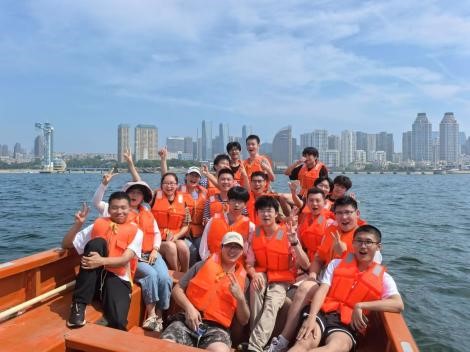 水上求生训练不仅是技能学习,更是对团队协作能力的考验。出海时,我们既领略了海上的唯美景致:宏伟的跨海大桥横跨碧波,云雾缭绕的高楼若隐若现,清风拂过,海面泛起粼粼波光…… 还意外体验了船舶碰撞的模拟场景 —— 没想到海商法中关于船舶碰撞的知识,竟以这样生动的方式提前闯入视野。回到求生馆,老师用丰富的求生经验向我们传授了如果在船上意外发生,如何最大程度的保护自己。从船上的避险行为、安全意识到意外落水后如何保持体温、水下姿势、救生衣使用等等……老师细致的介绍不仅使知识留存与脑中,还使人萌生了下水一试的打算。