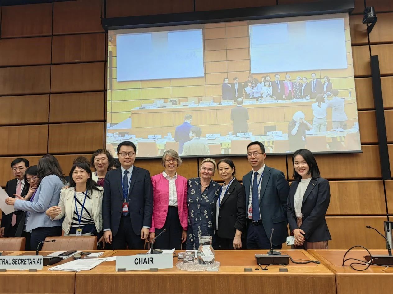 中国代表团成员与贸法会秘书长安娜·乔宾-布莱特等合影
