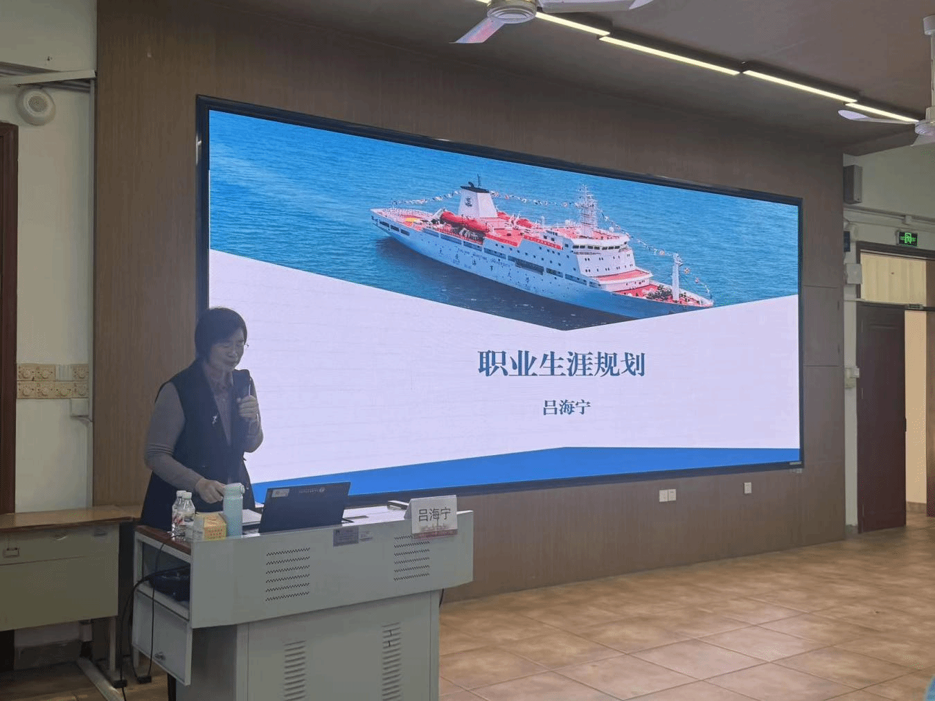 讲座中,吕海宁立足国家航运事业发展全局与海洋强国战略背景,系统介绍了我国航海事业整体发展现状及相关高校概况,围绕学校发展历程、学科专业、师资平台、优势特色、社会贡献、人才培养、就业升学,杰出校友、国际交流及校园文化等方面,全面展示了我校的办学底蕴与育人成效。
