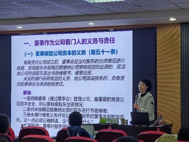 朱慈蕴教授系统介绍了新《公司法》中董事义务的修订内容,针对具体法律条文,用生动的案例,对立法背景、制度主旨、规则适用、解释分歧和完善方向进行了细致解析。朱慈蕴教授单独列示了董事在公司资本形成和资本维持方面负担的看门人义务,认为资产信用和资本信用各有其功能,不可偏颇。同时深入解析了董事受信义务,认为忠实义务作为防范利益冲突的消极义务,应注意其表现形式与规制方法之间的差异,特别是厘清自我交易与关联交易的边界以及两者在程序公正与价格公允方面的不同要求。而勤勉义务作为一种积极义务,应以“通常应有的合理注意”为判断标准,并注意“为公司最大利益”具有的不确定性。针对董事违反受信义务的责任,朱慈蕴教授认为归入权究竟具有惩罚性还是补偿性以及因此与损害赔偿范围之间的关系仍有待进一步探究;股东双重代表诉讼因为具有公司人格的穿透性,应该谨慎适用,董事作为清算义务人虽然与《民法典》第70条保持体系性协调,但是仍然从公司法的角度限缩了责任范围。在论及董事对第三人责任时,朱教授倾向于法定责任说,并从该条立法草案演进过程看,认为平衡了对第三人的保护与董事责任风险之间的关系,董事的责任应当是补充责任而不是连带责任。双控人极有可能成为事实董事和影子董事,应当注意其基于不同身份对公司应当承担的责任,而事实董事和影子董事存在规避董事资质要求的事实,因此所产生的后果,也应该受到公司法的重视。