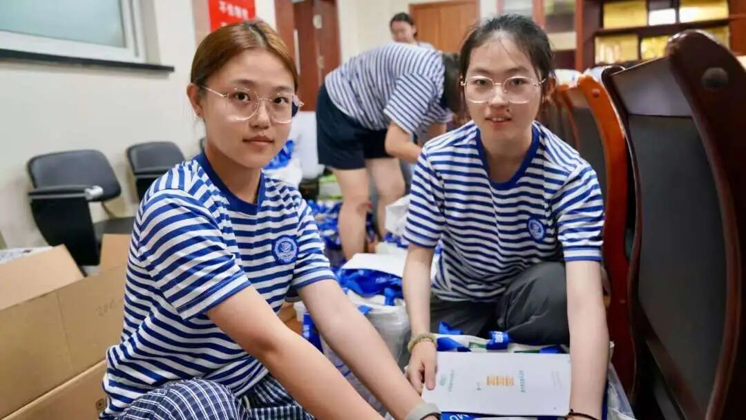 早在新生报到前,志愿者团队就已忙碌起来。他们穿梭于各栋宿舍楼之间,细心地将新生的被褥行李提前搬运至对应寝室,认真贴好每一张姓名牌;他们将学院为新生准备的贴心礼物一份份分装整齐、装入袋中,只为让学子们抵达时能第一时间感受到“家”的便利与温暖。