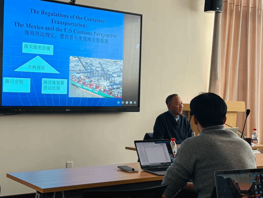 11月18日上午,第三场讲座“海洋集装箱在墨西哥港口的滞留:海洋运输与海关检查法规与运行分析”顺利开展,由蒋跃川副教授主持,邢厚群副教授、廖博宇老师担任与谈人,深入剖析了海洋运输与海关检查的相关法规及实际运行逻辑。