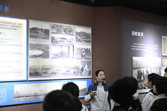 活动第一站:东鸡冠山。在“旅顺口记忆”展厅内,八十余件珍贵藏品与史料,辅以现代多媒体展示技术,系统性地勾勒出旅顺口从“海防要冲”到历经“甲午战争”“日俄战争”的沧桑历程,生动再现了“半部中国近代史”的波澜壮阔景象。