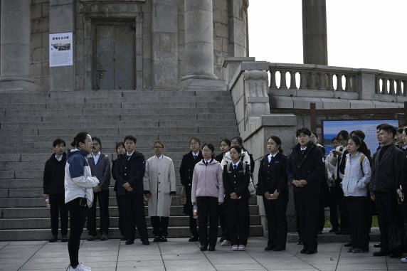 活动第二站:白玉山。讲解员现场讲解了白玉山塔的由来,并指出,白玉山塔原名“表忠塔”,是日本殖民当局为表彰在日俄战争中的官兵而修建的,是日本军国主义侵略中国的铁证。在场师生纷纷表示,要以史为鉴、以史为镜、以史明志,努力提升自我,立志报效祖国。