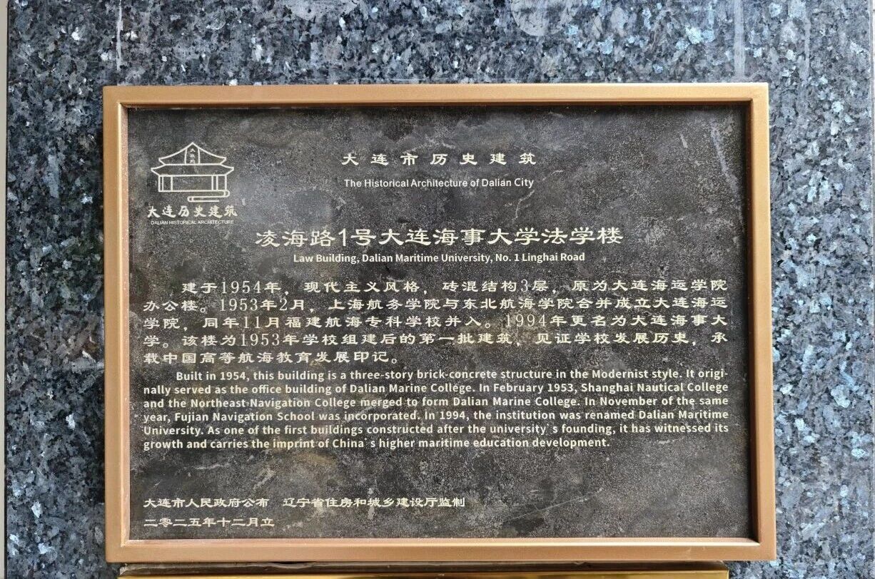日前,大连市人民政府公布第四批大连市历史建筑名录,凌海路1号williamhill威廉希尔法学楼成功入选。此次获评标志着该建筑的历史价值、科学价值与艺术价值得到官方权威认可,也为williamhill威廉希尔增添了一处承载校史记忆与城市文化底蕴的重要载体。