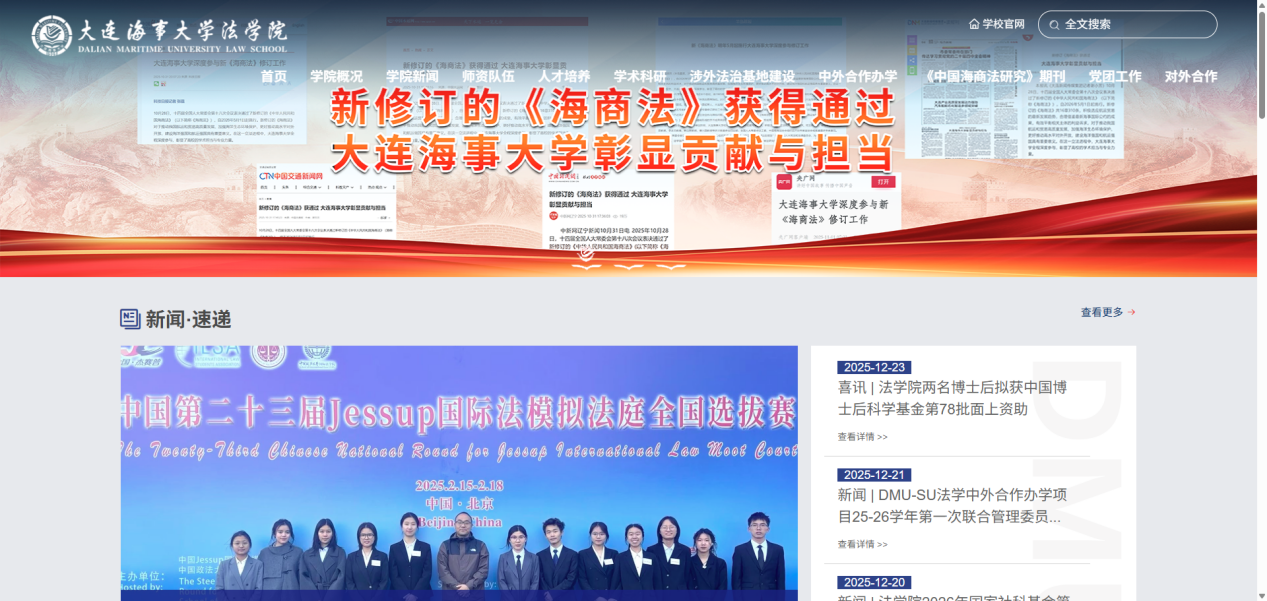 国际合作持续深化。依托高等学校学科创新引智基地成功举办第11届中外海商法国际会议;稳步推进“国际海事法律领军人才培养项目”;与香港大学法律学院及香港航商总会持续落实《联合培养海商法高端人才战略合作备忘录》,开展港澳高校暑期班项目;选派10名学生赴IMO等国际组织实习;支持教师参与UNCITRAL、CMI等国际公约研讨,全面拓展师生国际视野。