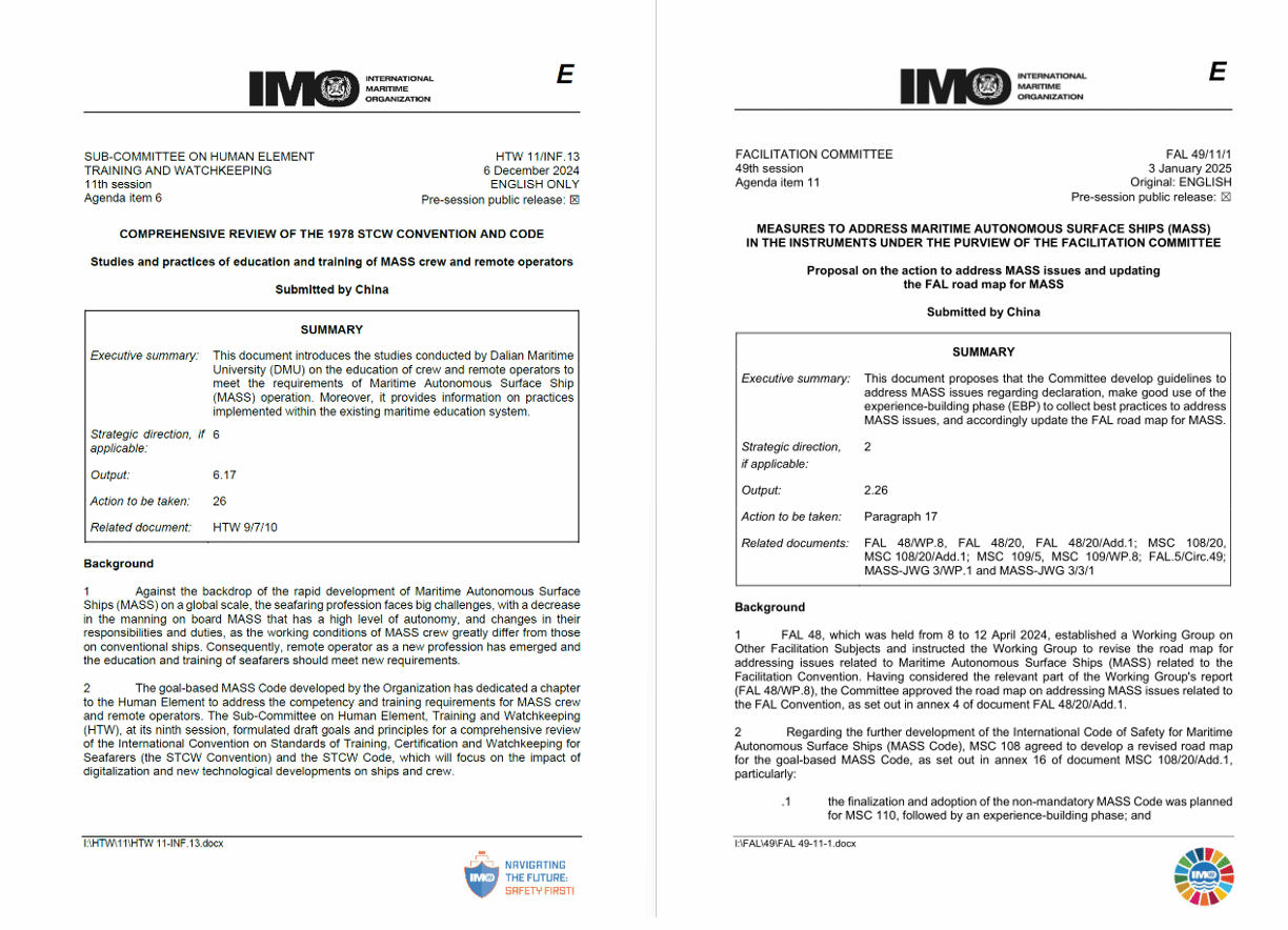 2025年,中心单独或与其他单位合作,向IMO提交提案4份,展示了我国在海事“单一窗口”建设中的成就,为进一步提升国际海运贸效率做出了贡献;为成员国解决MASS到离港信息申报问题提供了指引;为IMO海事数字化战略的起草提供了有益输入;展示了我校在智能航海人才培养方面的先进经验和做法,让世界航运业看见中国智慧和中国方案。