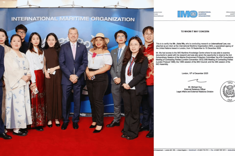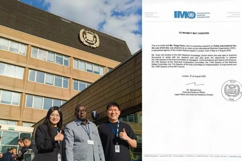 作为学校“涉海国际组织后备人才培养项目”的成员,我于今年从世界海事大学毕业后,随即进入国际海事组织(IMO)实习,系统参与了海事安全与环保领域的项目协调与文件撰写工作,将在校所学的理论与国际实践紧密融合。这段经历不仅加深了我对国际海事治理的理解,也让我更明确了自己在国际法与国际公共事务领域的职业兴趣。基于在IMO的实习积累,我成功申请到2026年前往联合国国际贸易法委员会(UNCITRAL)进行为期6个月的实习机会,未来将在国际贸易法律规则的制定与协调中继续深造。从世界海事大学到IMO,再到即将启程的联合国平台,我深切感受到学校项目所搭建的阶梯式成长路径,也期待自己能以实际行动,在更广阔的国际舞台上发出海大青年的声音。