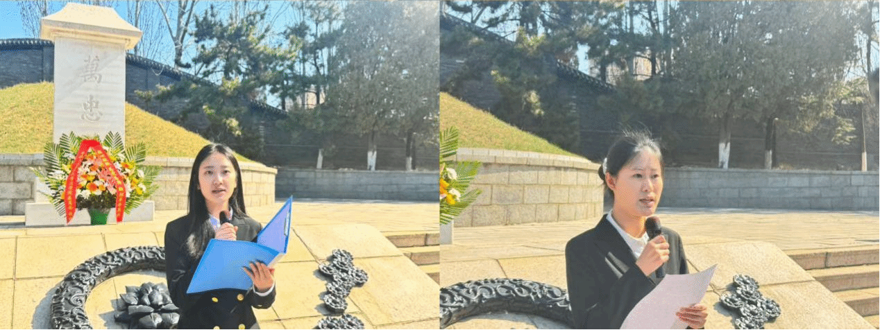 万忠墓前,全体师生为殉难同胞默哀,并敬献花篮。党员、入党积极分子代表王慧、张心怡、苏诗涵、胡金玉、王柏苏、邵嘉怡依次进行发言,呼吁新时代的中国青年,把沉痛的历史烙印在心中,肩负起时代重任,为实现世界和平与安宁贡献智慧与力量,在强国复兴征程上书写青春篇章。