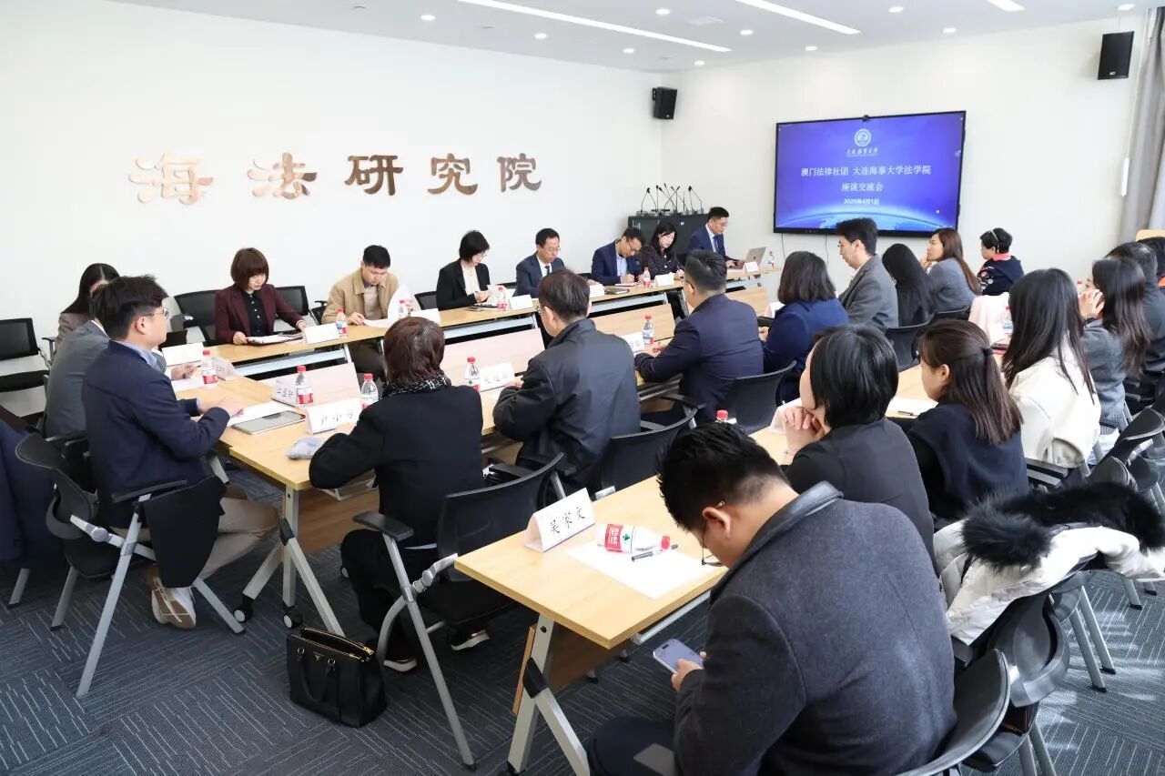 随后,参访团发言人代表蒋依娃等分别发言。蒋依娃分享了澳门在跨境法律服务中的实践经验,强调了语言能力、跨文化沟通能力对涉外法治人才的重要性;欧阳卓然围绕澳门海事法规体系进行概述,介绍了澳门在航运法律规制方面的制度特点与实践经验;江盛轩则聚焦于澳门船舶登记制度,详细阐述了登记条件、程序规范及与国际公约的衔接情况,为双方在海事法治领域的深入交流提供了有益参考。