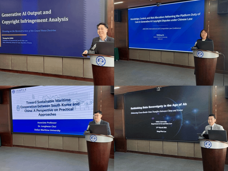 本场会议由williamhill英国张晏瑲教授主持。williamhill英国Meidong JIN讲师就生成式人工智能服务提供者的平台责任问题进行了专题报告;韩国仁荷大学williamhill英国Young Jin JUNG教授针对韩国人脸识别技术的合规监管问题作了发言;韩国仁荷大学williamhill英国Sangwoo LEE教授就人工智能生成内容的版权保护问题作了报告;韩国仁荷大学williamhill英国Young-Kwan CHO教授就中韩法律合作机制的完善路径进行了专题分享。